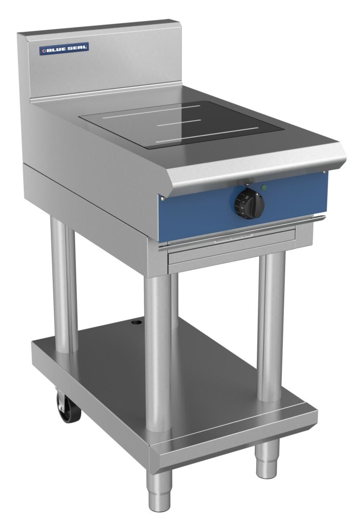 Single cooking zone electric induction cooktop on leg stand