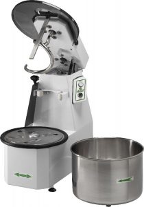 The gentle action of a spiral mixer works the dough well and gives a nice mix without raising the temperature of the mix